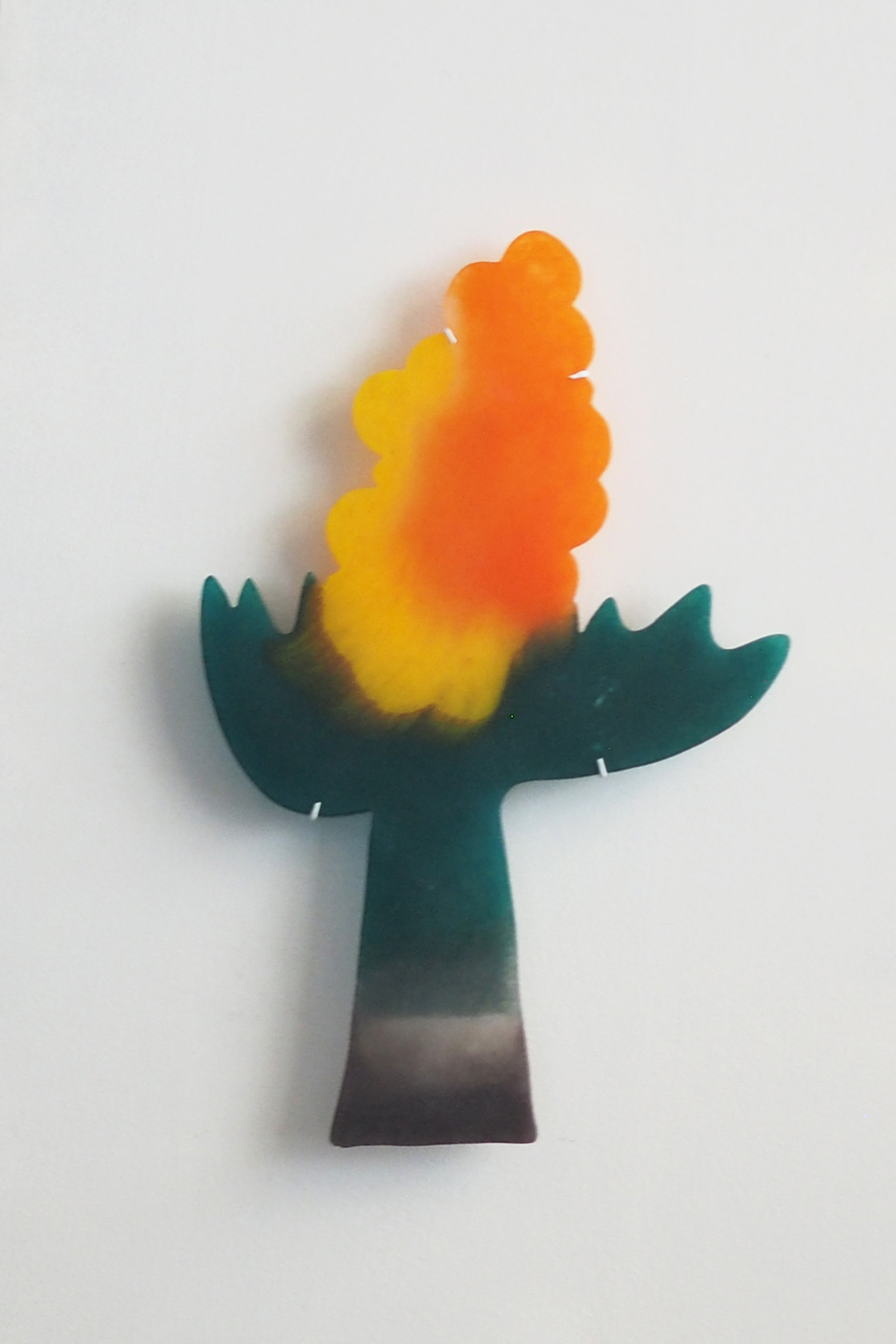 主にパート・ド・ヴェールという技法を使い、ガラス素材を電気炉で成形して作品づくりをしています。ガラスの粒が溶ける時に空気を抱き込んでできる質感は、やわらかく、独特の光をたたえていて、その様子は、曖昧だけど親しい、記憶のなかの光景とよく似ていると思います。 フォルムの中に絵を描くような意識で、くらしや壁面をいろどる作品の制作を行っています。