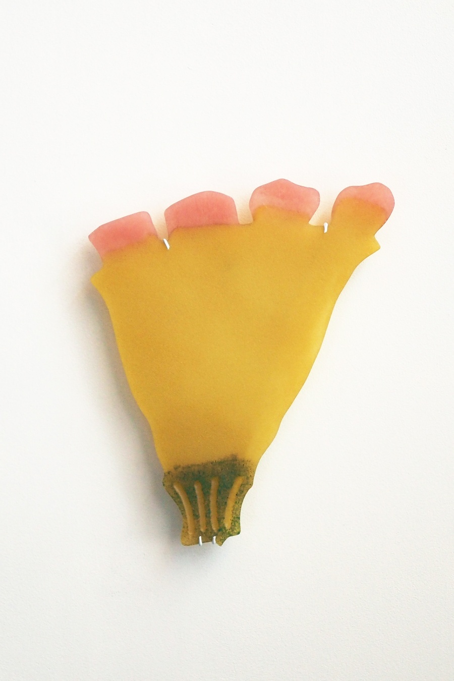 主にパート・ド・ヴェールという技法を使い、ガラス素材を電気炉で成形して作品づくりをしています。ガラスの粒が溶ける時に空気を抱き込んでできる質感は、やわらかく、独特の光をたたえていて、その様子は、曖昧だけど親しい、記憶のなかの光景とよく似ていると思います。 フォルムの中に絵を描くような意識で、くらしや壁面をいろどる作品の制作を行っています。