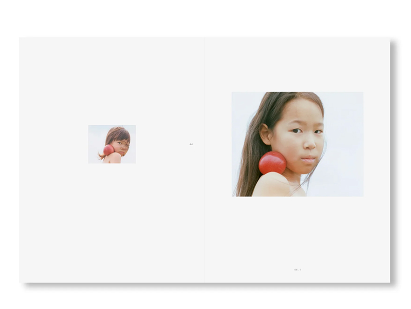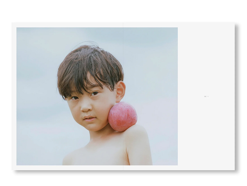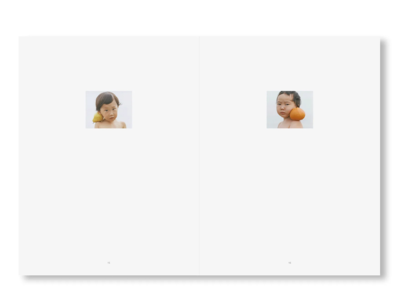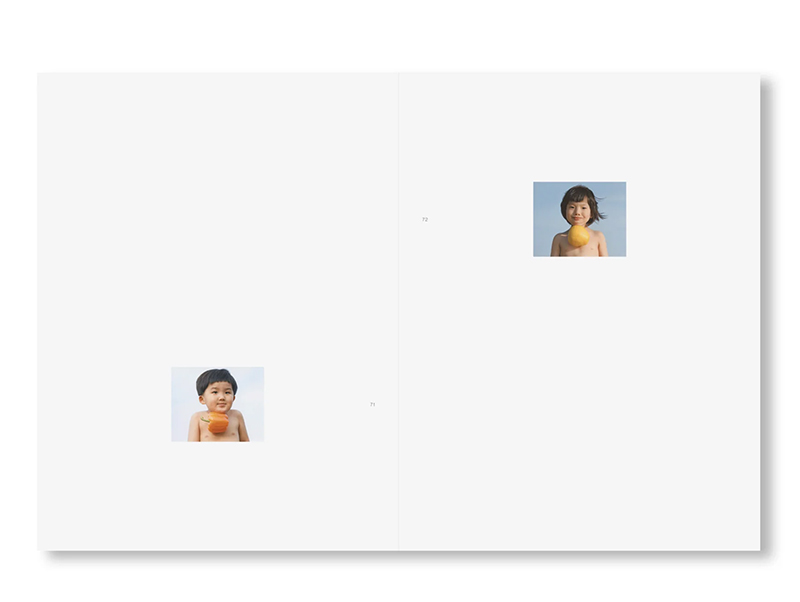以前の写真では、子供たちは意図もなくレンズに視線を向け、いたずら心を見せるものもあれば、重々しい静けささえ感じさせるものまで、その表情は幅広く多様であった。子供たちは世界から少しだけ離れた場所に在り、自然のままでいながら、落ち着きも孕んでいる。そこでは、果物のバランスをとるという行為が、「ただ在ること」という言葉なき挑戦を表す詩的なメタファーとなっている。
